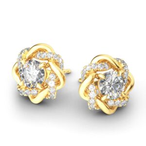 Enhance your elegance with these stunning 14K gold earrings, featuring 2 CT of round white gemstones at the center. Each earring is meticulously adorned with 56 dazzling lab-grown diamonds, creating a radiant sparkle that captures the light beautifully.