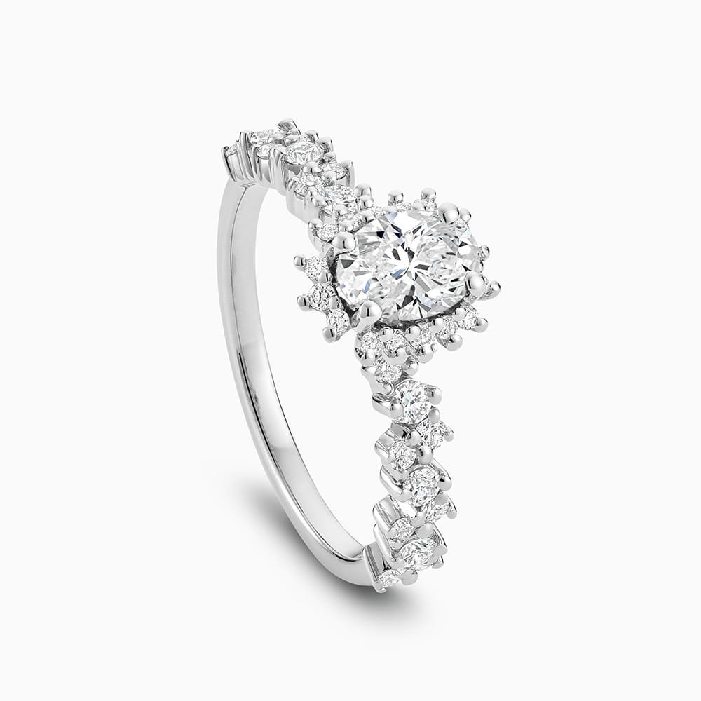Diamond Halo Engagement Ring With Side Diamonds