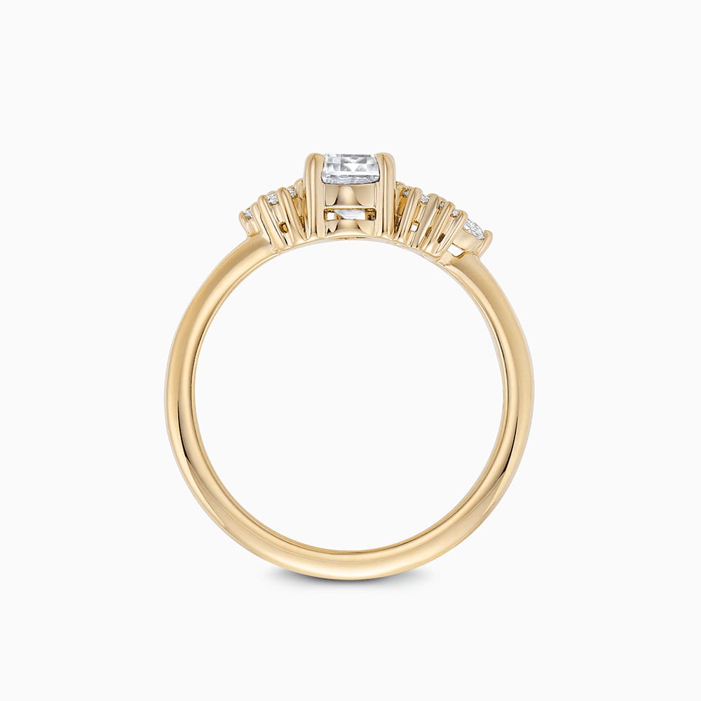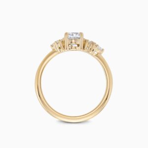 This exquisite engagement ring features a stunning center stone flanked by seven sparkling side diamonds. Crafted with precision and elegance, this ring is the perfect choice for celebrating your love with timeless style.